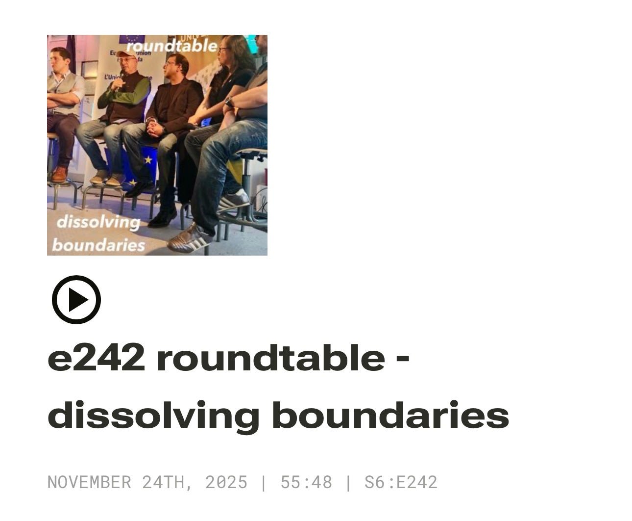 This compilation of voices is from e242 roundtable - dissolving boundaries, at a panel called Dissolving Boundaries that took place on October 4, 2025, as part of Nuit Blanche Toronto, co-presented by the Global Centre for Climate Action at OCAD University and the European Union (EU), through its Delegation to Canada.