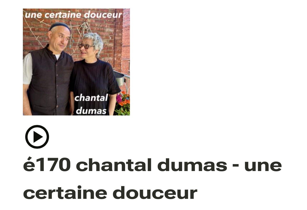 Ceci est un extrait de é170 chantal dumas - une certaine douceur enregistré à Montréal le 21 novembre 2025 avec l’artiste sonore et une amie de longue date, Chantal Dumas qui m’a parlé, entre autre, de sa composition électroacoustique « Oscillations planétaires » une oeuvre qui nous invite à imaginer que nous écoutons les battements du cœur de la Terre, que nous sentions le grondement des plaques tectoniques et que vous vivons dans un temps géologique.